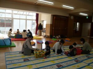 いつものお部屋とは違うお遊戯場でお別れ会を行いました。ボールプールや好きな遊びを楽しんだり、体操をしてからだを動かしました。たくさんお話をしたり、楽しい時間を過ごすことが出来ました。にこにこサークルに参加していただきありがとうございました。